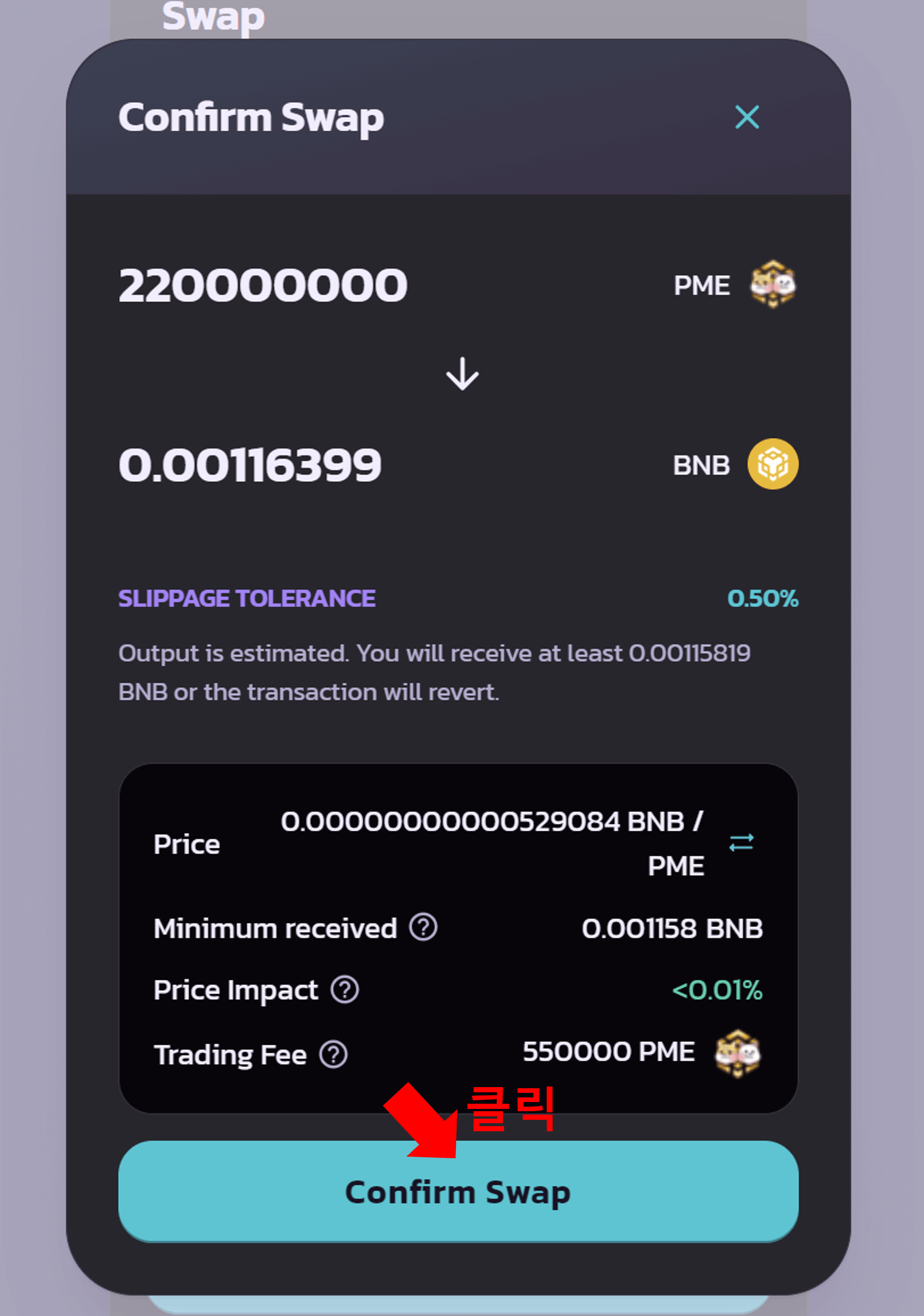 'Confirm Swap'을 클릭합니다.