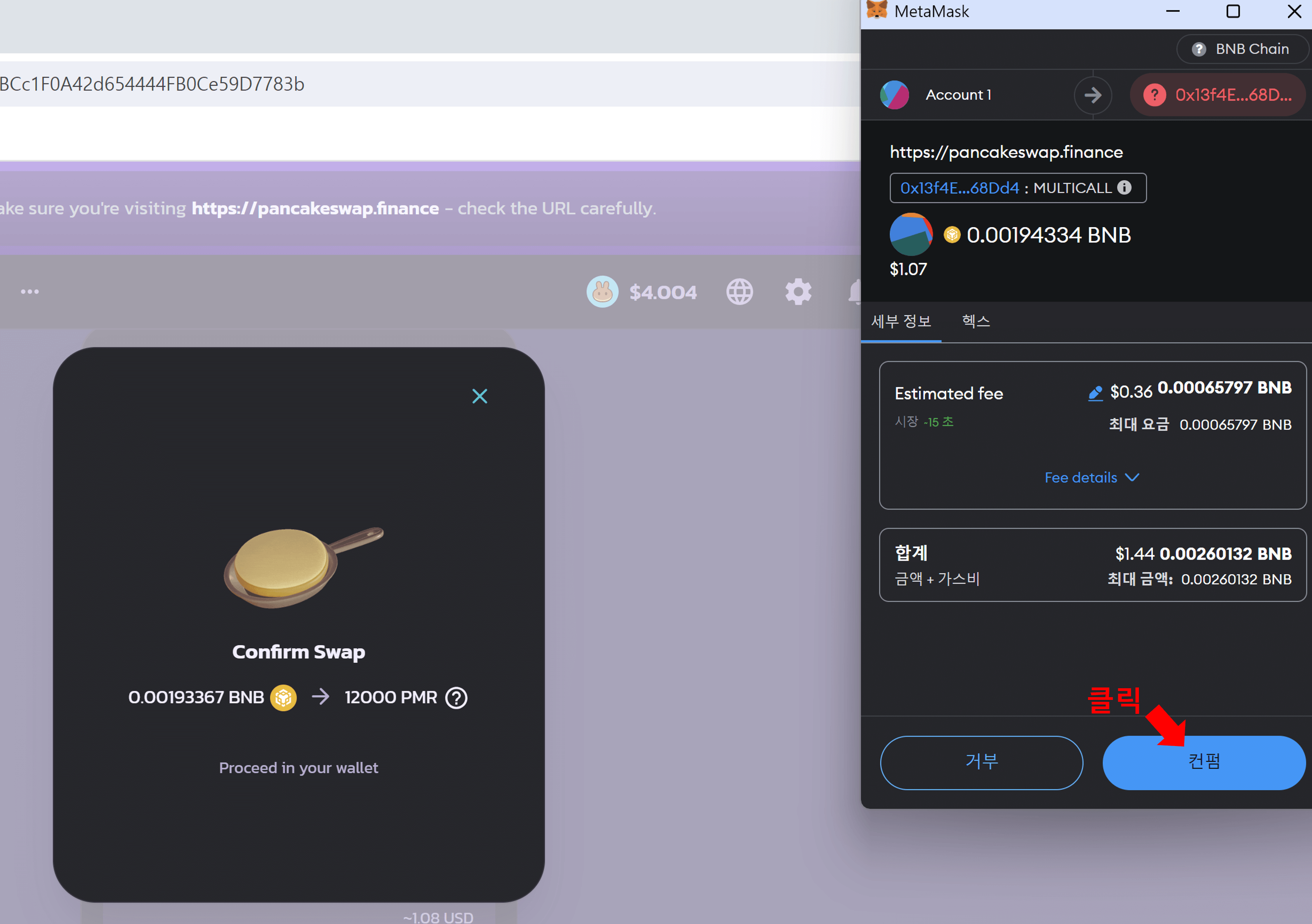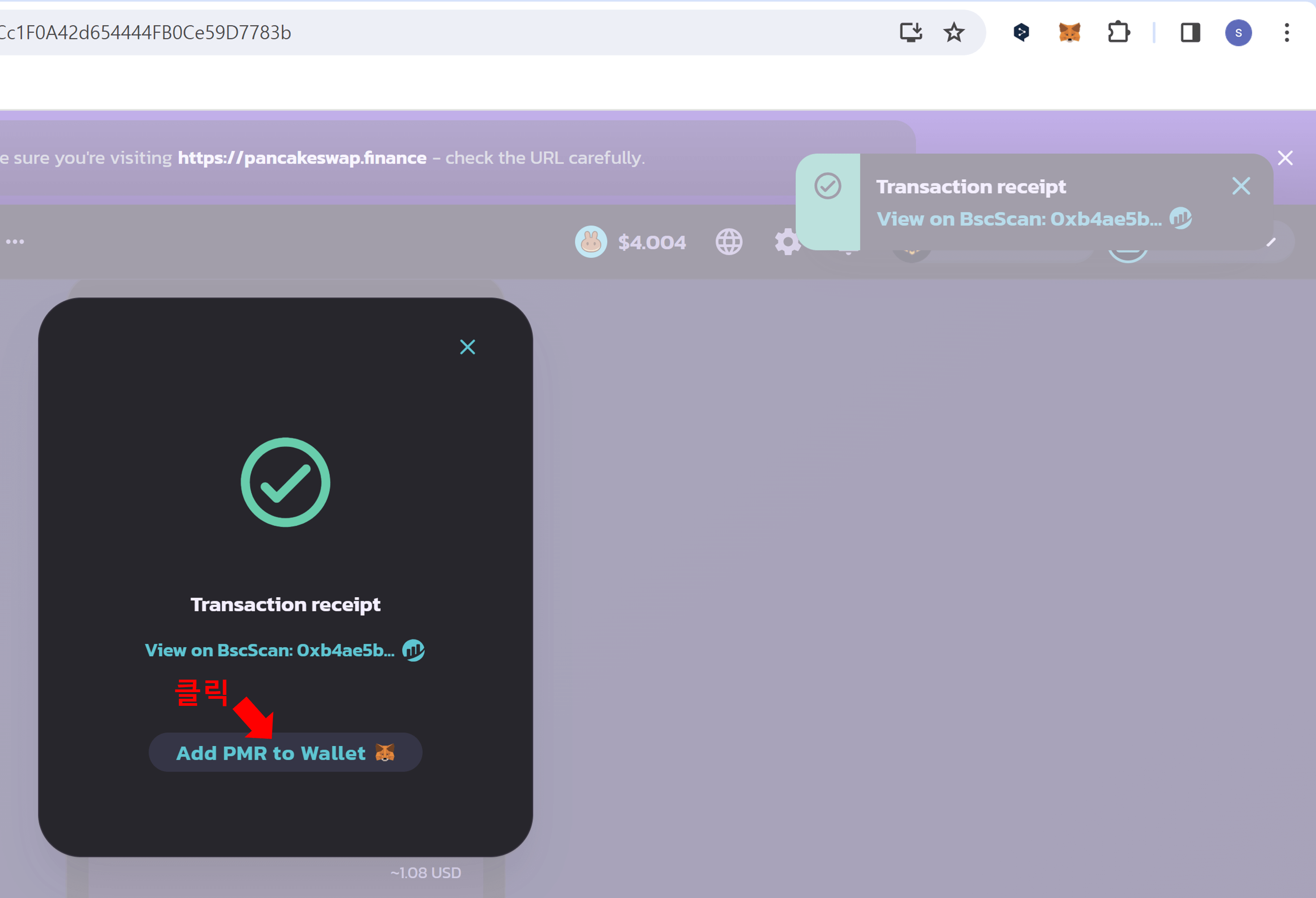 PMR 토큰 팬케이크 스왑에서 매수하기