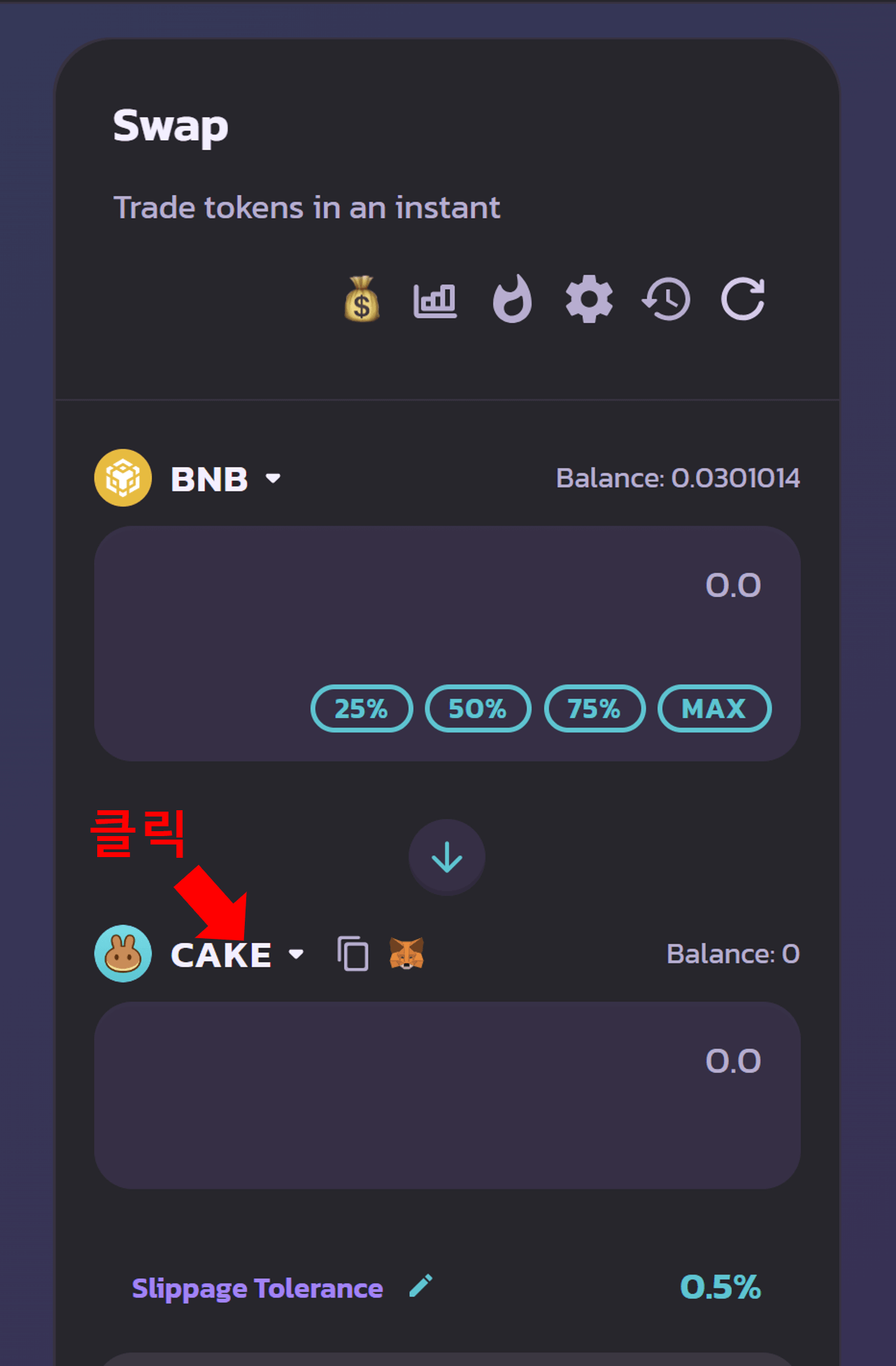 팬케이크 스왑과 메타마스크를 연동합니다.