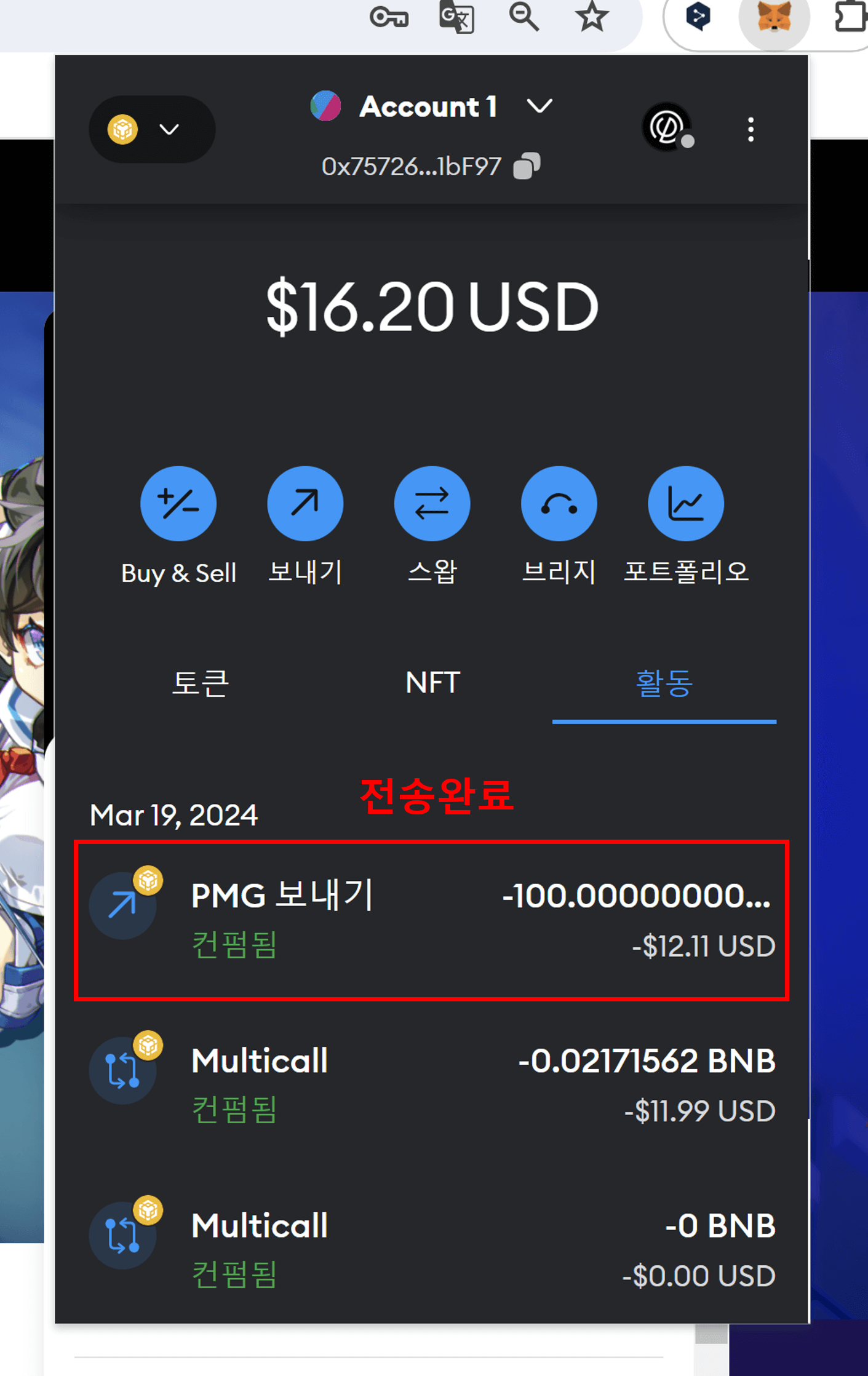 PMG 토큰 메타마스크 지갑으로 출금하기